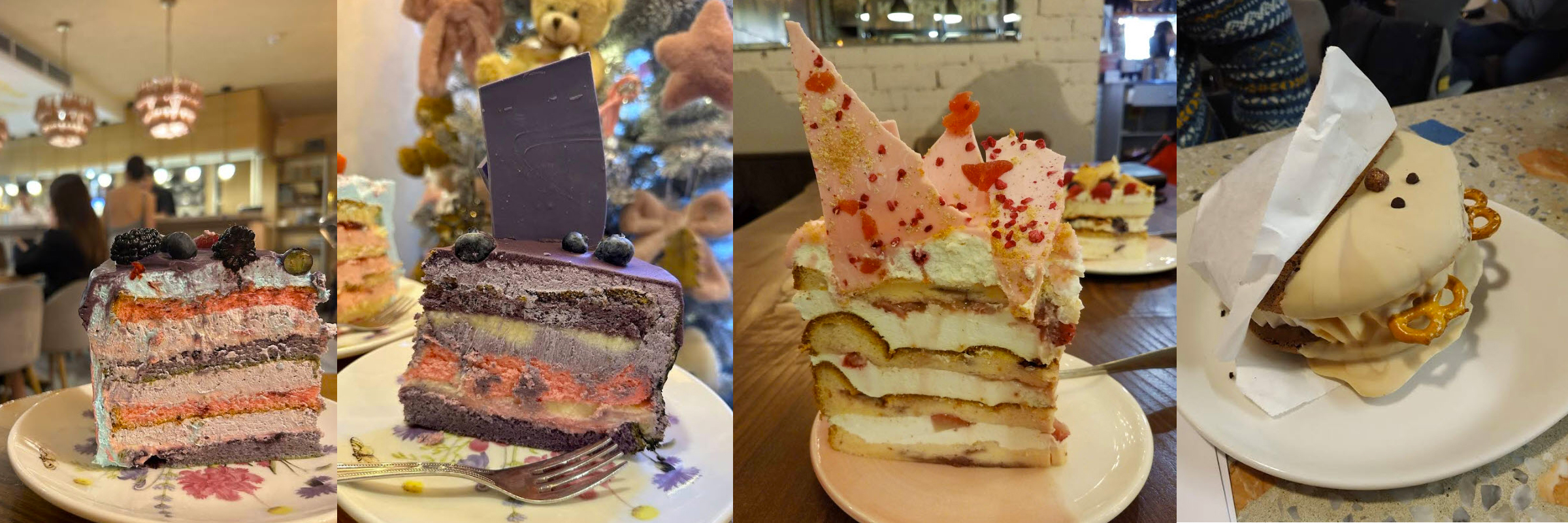 ร้านเค้กน่ารัก เค้กที่นี่ชิ้นใหญ่มาก (Big portions) จนบางครั้งหนึ่งชิ้นอาจจะต้องแบ่งกันทานสองคนตั้งหัวมุมถนน บรรยากาศเฟรนลี่ มีเค้กหลากสีหลายแบบ มีหลายสาขา