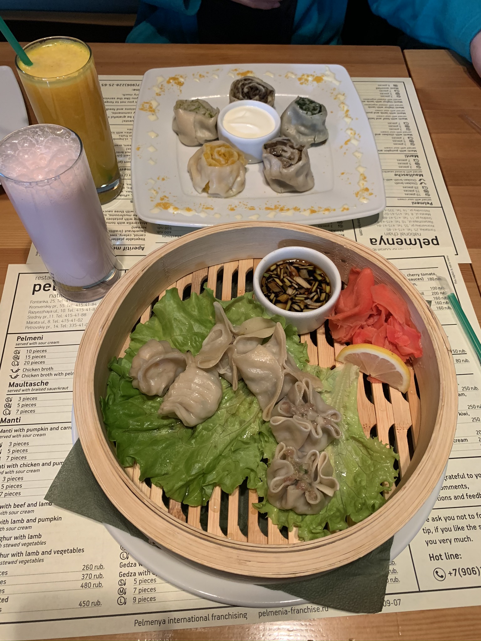 ราคาน่ารัก ไม่แพง เป็นร้านที่มีแต่ เกี๊ยวรัสเซีย เป็นอาหารพื้นเมือง และมีเกี๊ยวจากหลากหลายประเทศให้เลือกลอง ทั้งแบบรัสเซีย เยอรมัน และฝั่งเอเชียเอง เยอะมากค่ะ เน้นความประณีตและการเสิร์ฟที่สวยงามด้วย มีลาวิโอลี่ไส้ต่าง ๆ ให้เลือกมากกว่า 20 ชนิด เมนูภาษาอังกฤษไม่มีรูปภาพ เราเลยยื่นภาพอาหารที่เตรียมไว้ให้พนักงานดู เขาก็เข้าใจ