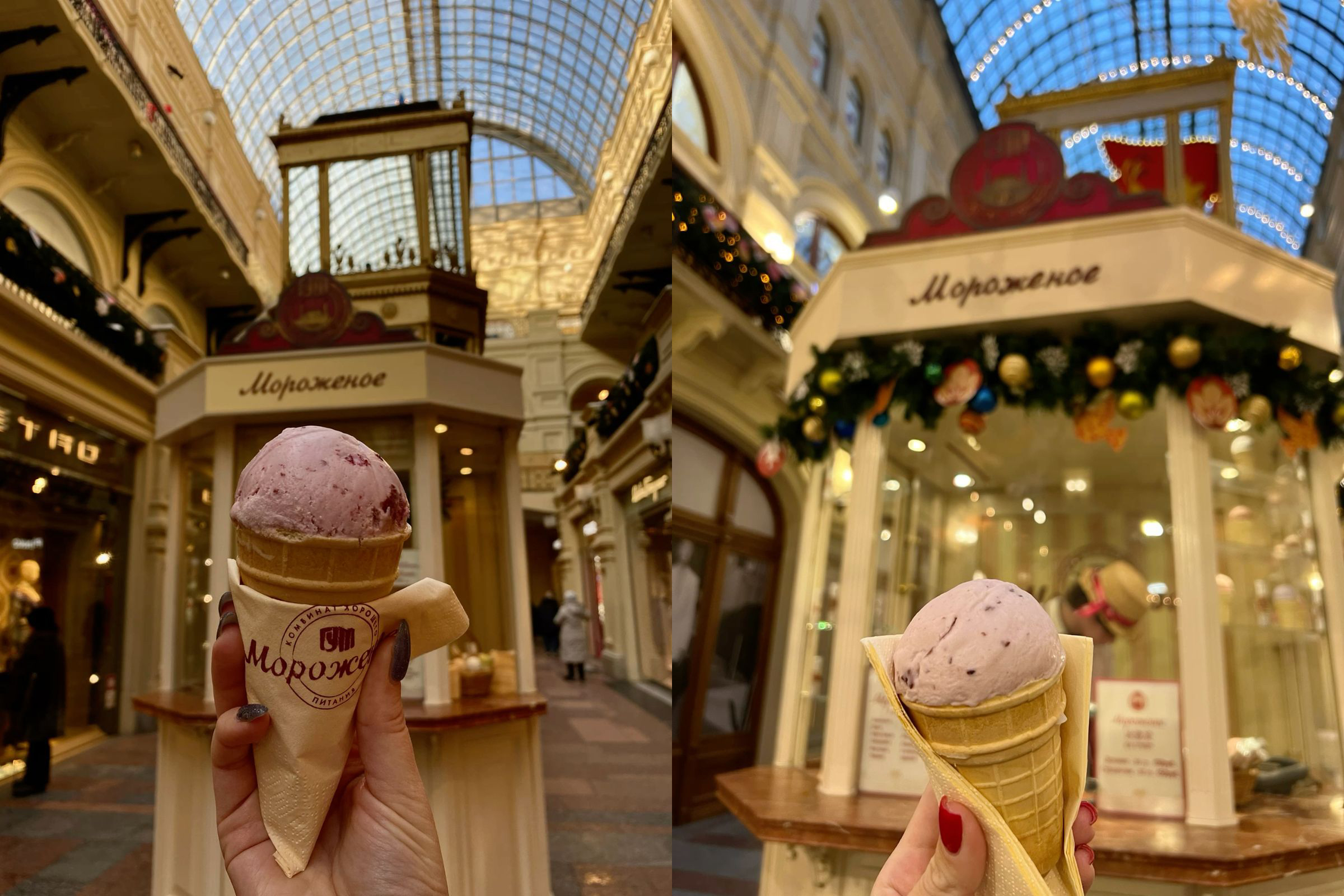 ถ้าไปเดินเล่นที่จัตุรัสแดง (Red Square) อย่าลืมแวะเข้าไปซื้อไอศกรีมนี้แล้วเดินถือถ่ายรูปสวยๆ ในห้างกุมนะ บรรยากาศจะเหมือนย้อนยุคไปยุค 50