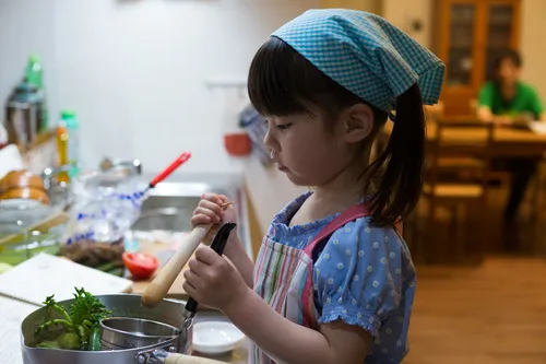สองแม่ลูกช่วยกันทำซุป มือน้อยๆ ของฮานะจังกับอุปกรณ์ทำกับข้าว